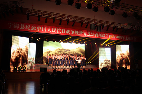 今年9月3日是中国人民抗日战争暨世界反法西斯战争胜利70周年纪念日。为了大力弘扬爱国主义精神和红色文化,培育民族精神和社会主义核心价值观,凝聚宁海县人民勿忘历史、珍爱和平的广泛共识,激发广大党员干部群众同心同德,共谋发展的强大精神力量,团宁海县委等单位联合主办了这次以“铭记历史、缅怀先烈、珍爱和平、开创未来”为主题的纪念中国人民抗日战争暨世界反法西斯战争胜利70周年主题歌会。