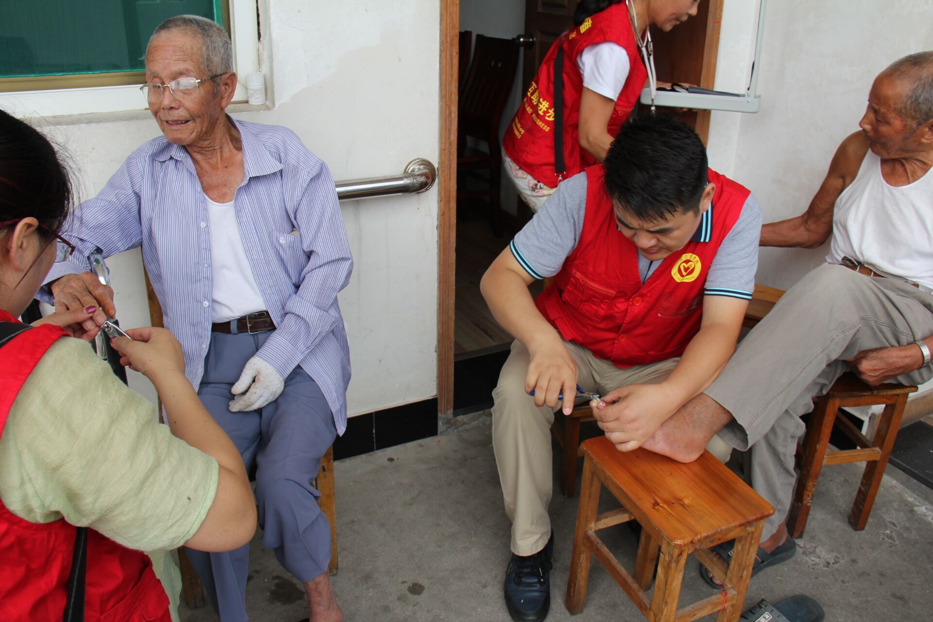 走进敬老院,志愿者们熟练的各自忙开了,为老人量血压、理发、洗头、洗脚、剪指甲、包包子,帮助老人检查过去药品,指导他们合理用药.........