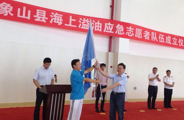 8月28日,象山县首支海上溢油应急志愿者队伍在大唐乌沙山电厂正式成立,象山县志愿者协会会长出席成立仪式并讲话。该队伍由来自5家港航单位的33名青年志愿者组成,将成为象山县海上应急清污力量的重要补充,为中国青年志愿者蓝色护海行动增添强动力。
