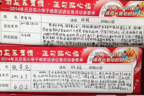 象山县各小学开展2014年新春感恩话语征集活动